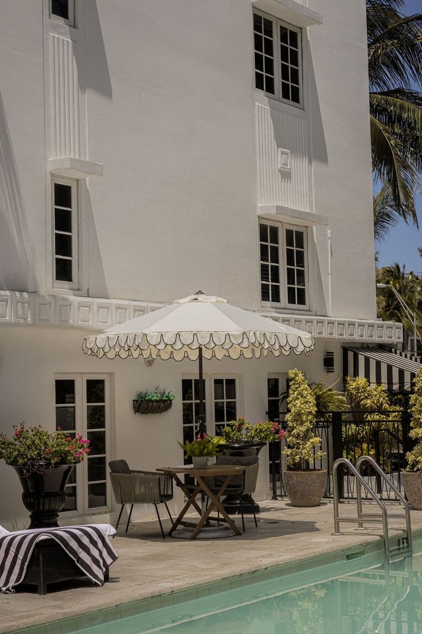 The hotel’s exterior blends classic Art Deco elegance with a polished, modern aesthetic that offers a refined presence on Collins Avenue. Inside, our design channels a sophisticated nautical vibe with rich wood finishes, brass fixtures, and subtle maritime touches that create an inviting atmosphere. Each room is a stylish retreat, with crisp white linens and thoughtful details that evoke the feeling of a polished seaside escape, just a block from the beach.